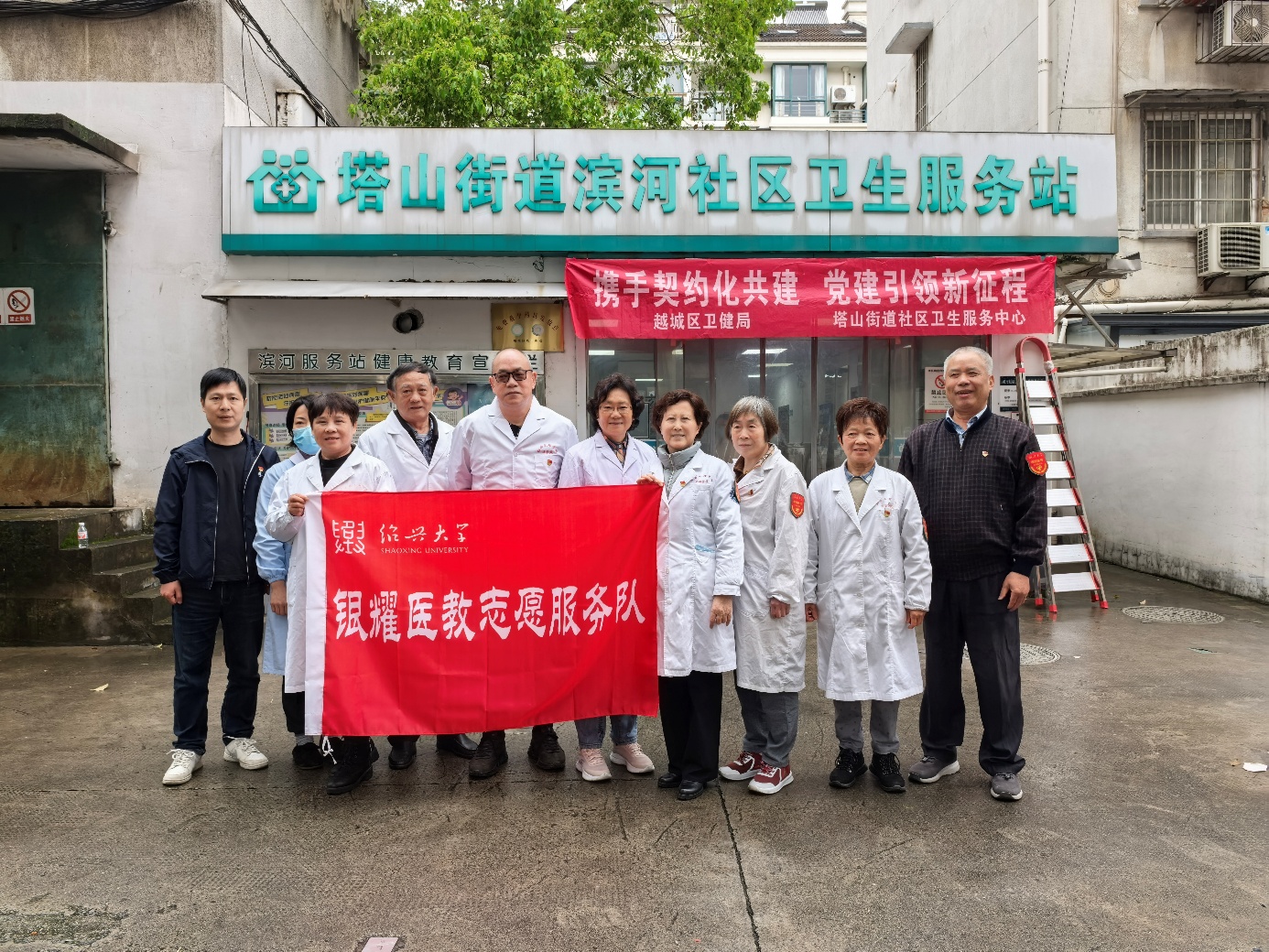 在绍兴文理学院成功更名绍兴大学后,绍兴大学银耀医教志愿服务队的党员志愿者深情表示,要以志愿服务等实际行动庆贺学校成功更名大学,以感谢绍兴人民对创办更名绍兴大学的热情支持。4月23日上午,在越城区塔山街道社区卫生服务中心与滨河社区的大力支持与帮助下,绍兴大学银耀医教志愿服务队的8位老党员志愿者在队长王建华组织下,按时来到滨河社区卫生服务站的志愿服务现场,为社区居民送上了一场关爱居民健康的义诊咨询服务。